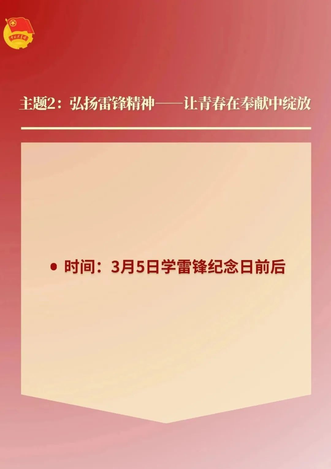 本部分以重要时间节点为序确定主题团日建议,贯穿全年、适用各地各类基层团组织。