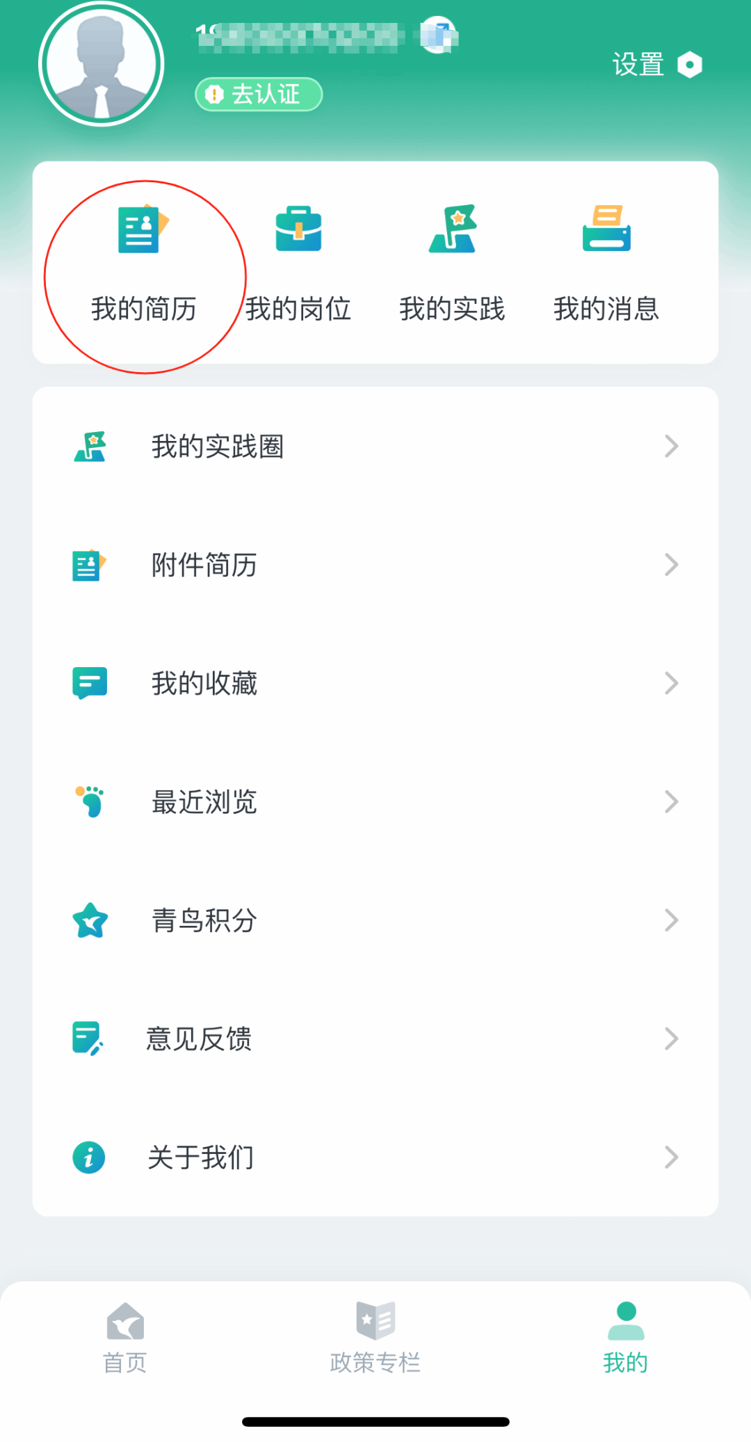 2.点击右下角【我的】,点击【登录】选择手机号登录,填写信息后填写【我的简历】。
