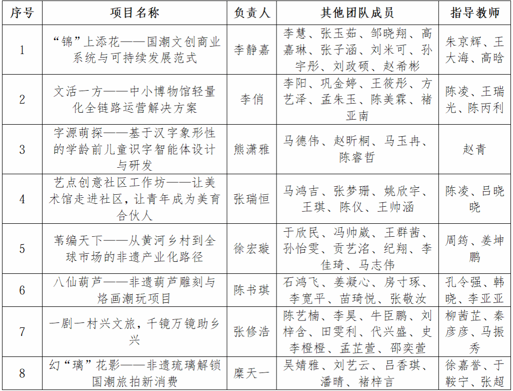 创业计划竞赛推报省赛项目公示