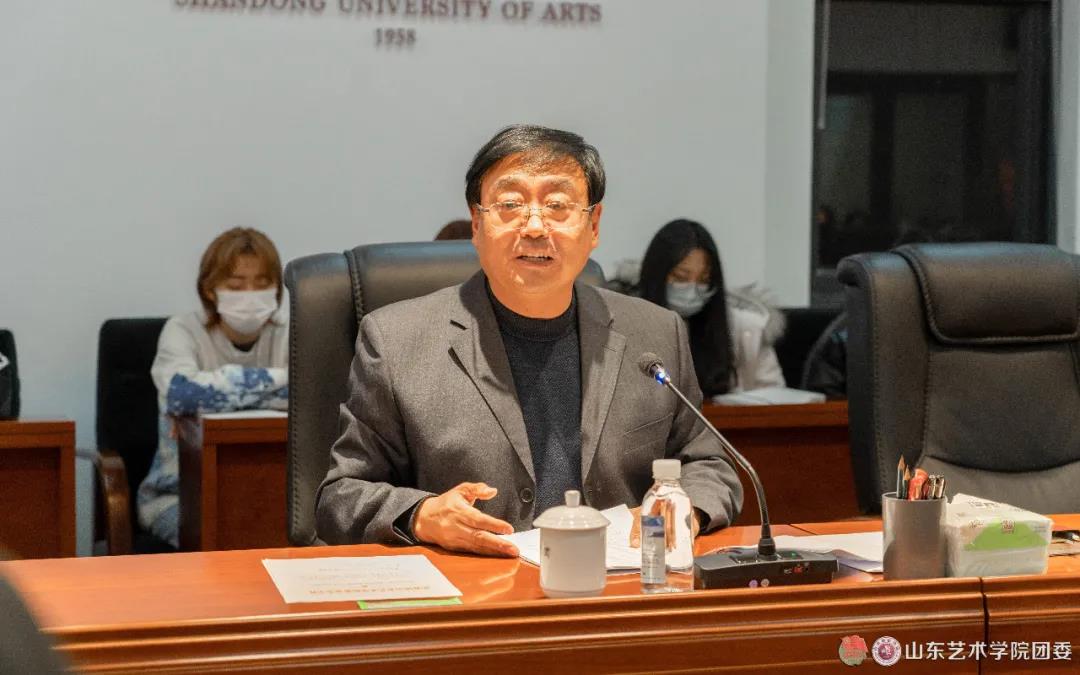 孔祥华希望学生干部要带头学好、领会好党的十九届五中全会精神,把思想认识统一到党中央的部署上来,刻苦学习,勤奋实践,努力做到德智体美劳全面发展,争做担当民族复兴大任的时代新人。一要坚定理想信念,厚植爱国主义情怀。登高望远,把个人的理想与祖国的命运紧密相连,自觉做到爱国爱党爱社会主义、爱校爱家爱集体,增强“四个意识”、坚定“四个自信”、做到“两个维护”,做政治上的明白人,牢牢把握人生前进的正确方向。二要刻苦求知,增长才干。脚踏实地,以学习为第一要务,多读书、勤动手,多实践、勤创作,多思考、勤创新,掌握建设国家服务人民的真才实学,为走向社会打下坚实基础。三要加强道德修养,培养奋斗精神。品德高尚,培养良好的道德情操和意志品质,养成良好心理素质和心理习惯。加强体育锻炼,养成良好习惯和生活方式,锤炼坚强意志,培养合作精神。加强劳动教育,崇尚劳动、尊重劳动、学会劳动、学会勤俭,弘扬劳模精神、劳动精神和工匠精神。不断增强艺术素养,提升感受美、表现美、鉴赏美、创造美的能力。孔祥华勉励同学们把“人生就是奋斗”作为信条,学在山艺,创造艺术人生,努力为国家、为社会、为学校的发展贡献智慧力量。