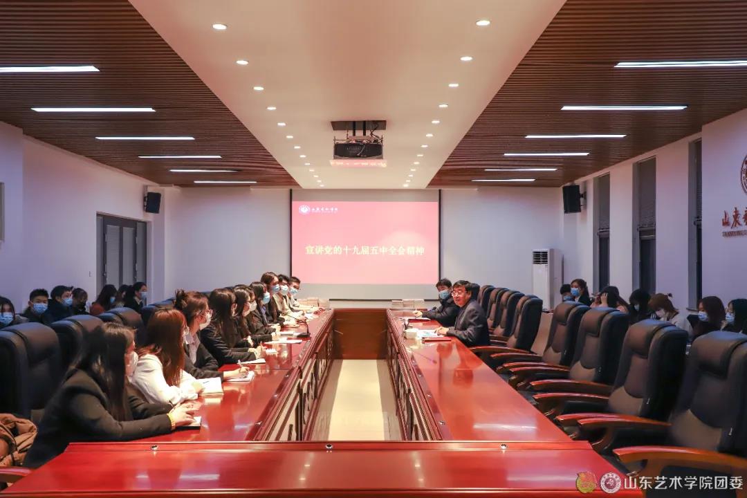 孔祥华从五个方面宣讲了学习体会。一是党的十九届五中全会是在“两个一百年”奋斗目标的历史交汇点上召开的一次继往开来、承上启下的具有里程碑意义的重要会议。二是“十三五”时期国家经济社会发展成就巨大、振奋精神、令人鼓舞。三是中共中央审议通过的《建议》是五中全会最重要成果,全面把握“十四五”时期经济社会发展的指导思想、必须遵循的原则、“十四五”时期经济社会发展的主要目标、到二〇三五年基本实现社会主义现代化的远景目标以及主要措施。四是深刻认识新发展阶段、贯彻新发展理念、构建新发展格局,实现高质量发展。五是认真总结学校“十三五”时期发展成就,谋划制定“十四五”事业发展规划,坚持立德树人根本任务,努力建设特色鲜明、国内一流的现代化高水平艺术大学。