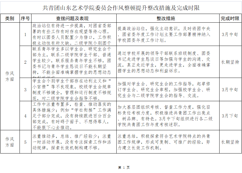 山东艺术学院作风整顿提升整改措施及完成时限(公开).xlsx