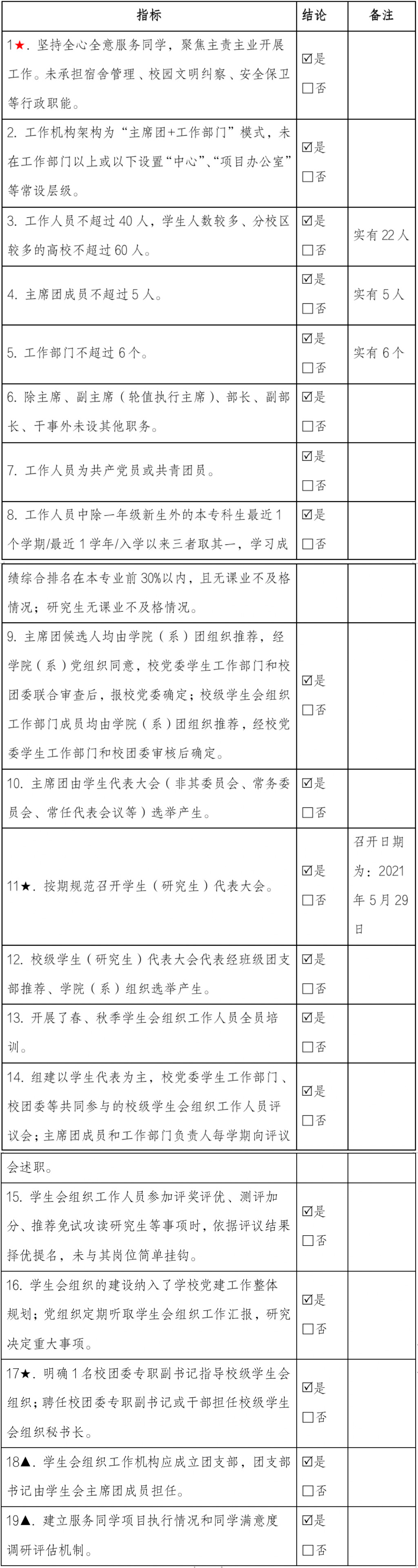 (二)二级学生会组织(含二级院系、书院、分校区等学生会、研究生会)改革自评表
