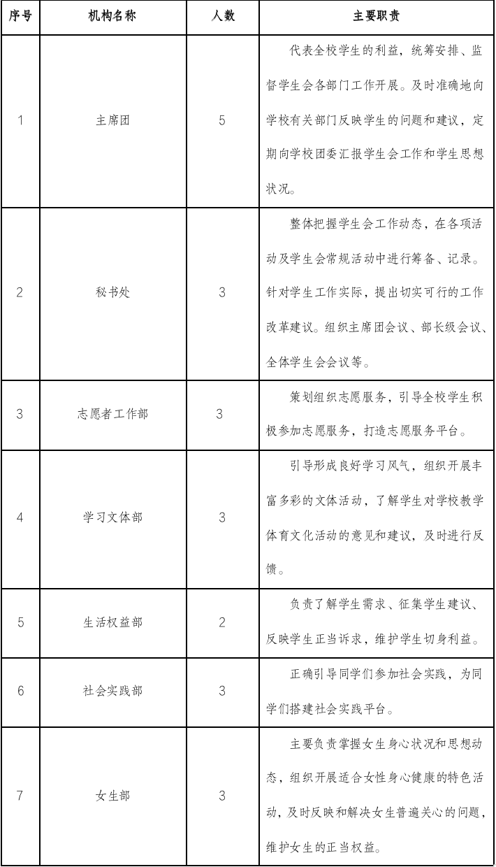 第二十一条学生会各工作部门为本会处理日常工作、开展活动的常设职能机构。