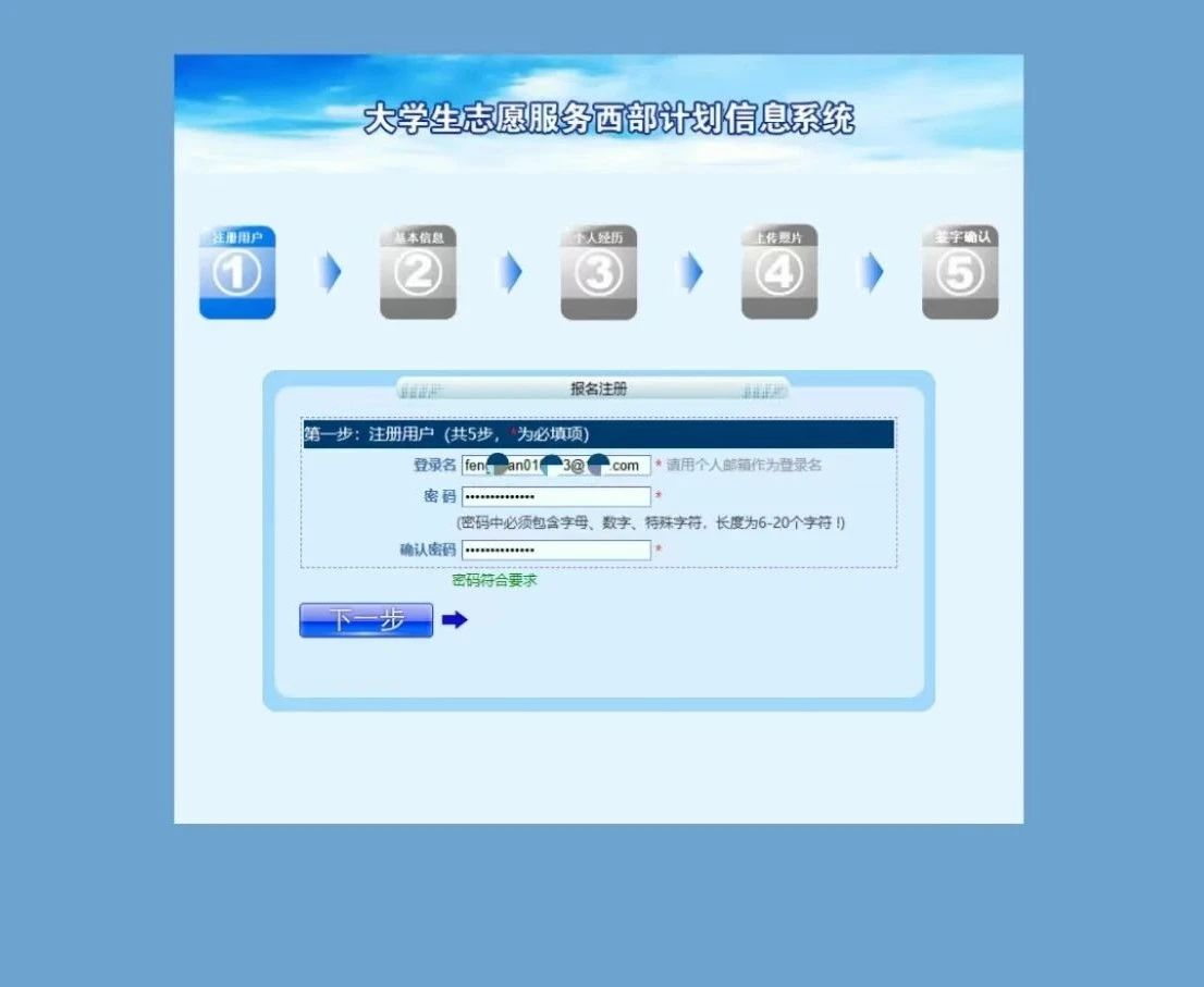 认真填写基本信息,填写完毕后点击“下一步”。
