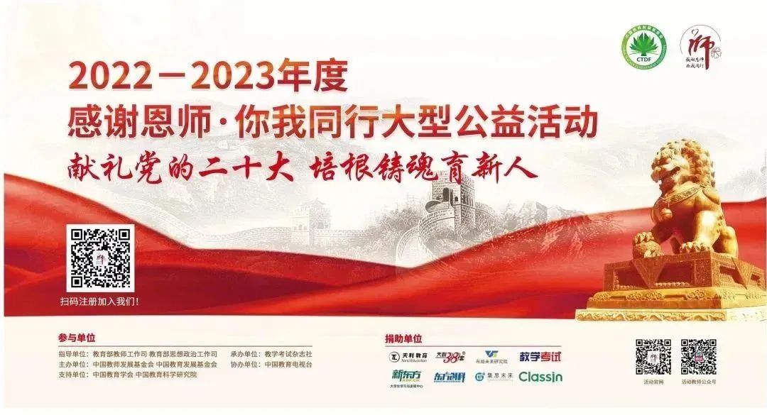 本次2022-2023年度公益活动“感谢恩师,你我同行”也将继续坚持立德树人根本任务,号召青少年学生爱国爱家、尊师重教、积极进取、践行社会主义核心价值观,以实际行动学习贯彻党的二十大精神,快随团团一起去看看吧!