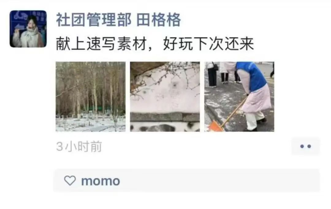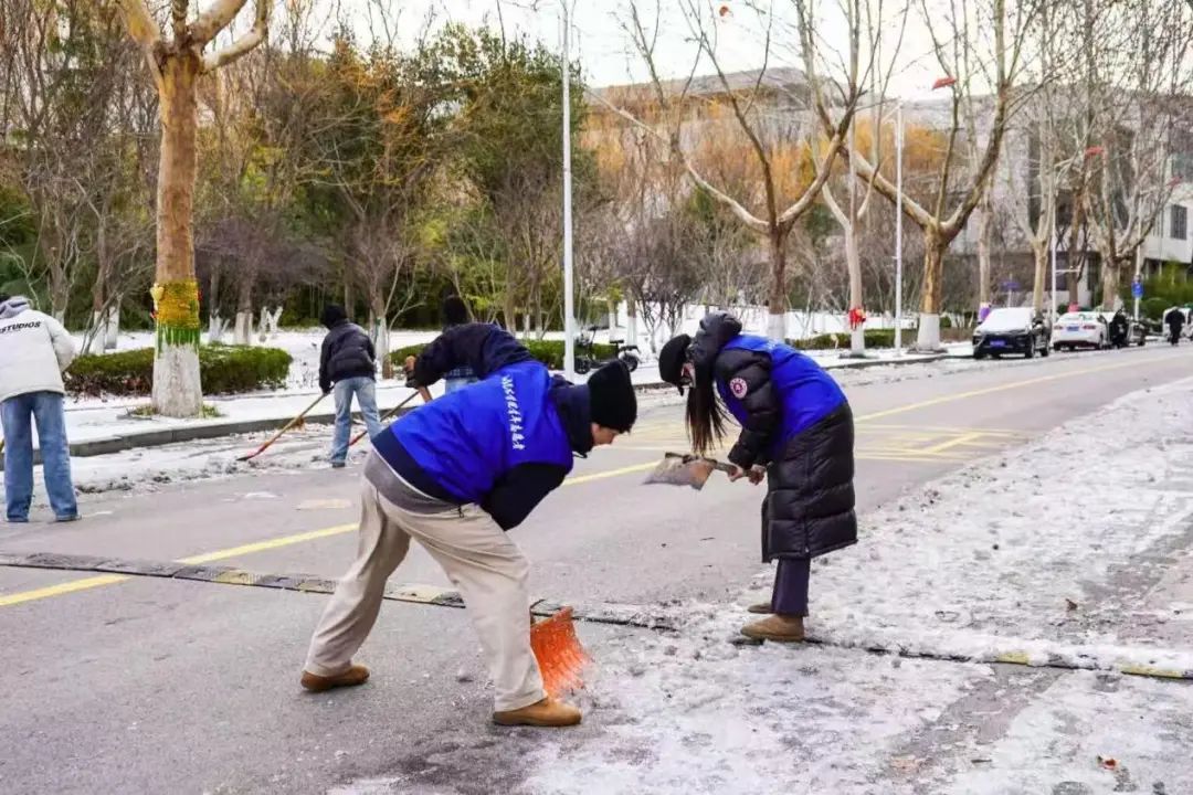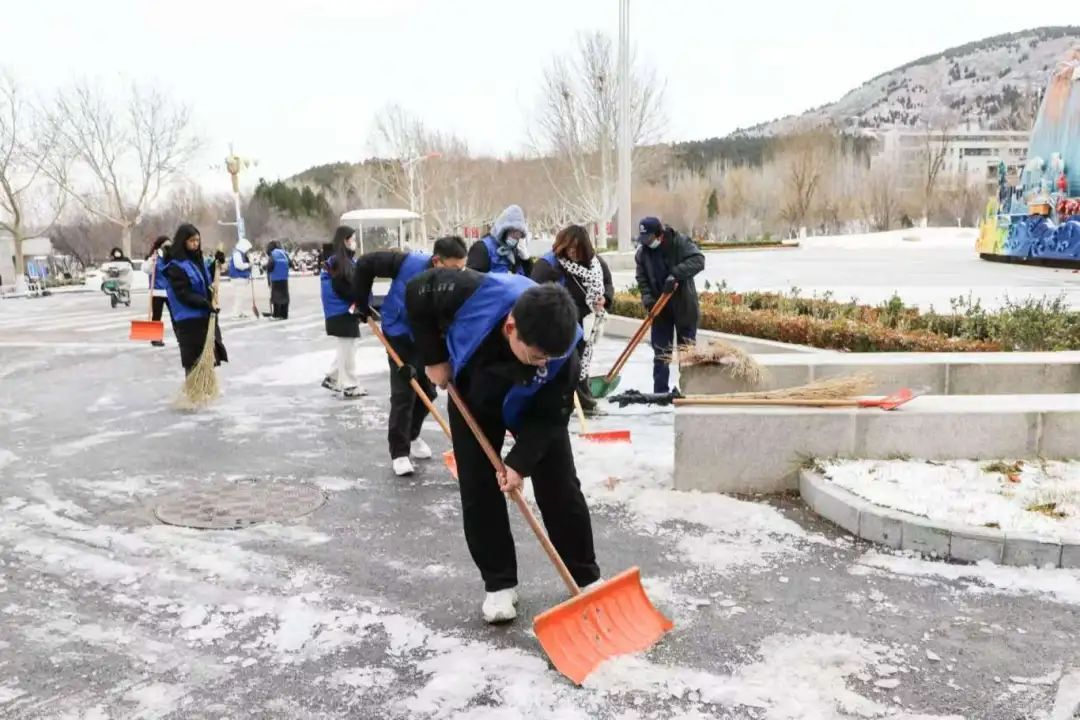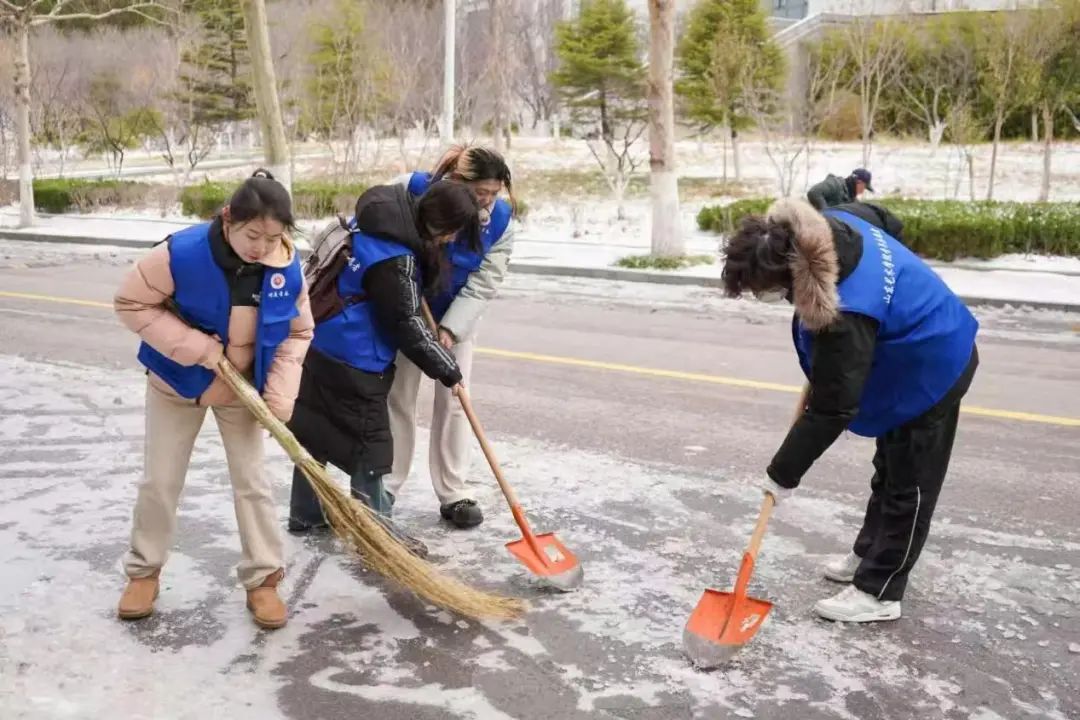 3月2日,泉城突降暴雪。山艺校园内一键换上了“春日限定”皮肤,此番美景引得不少师生纷纷驻足、收藏这份春日专属浪漫。同时,也给校园安全带来了一定的隐患。为切实服务保障校园正常运行和师生出行安全,确保雪后道路安全畅通,团委联合学生工作部(处)、后勤管理处发出以“雪”为令,山艺青年铲冰除雪倡议书。不到一小时,朋友圈刷屏,阅读量破千!二级学院、团支部、学生党支部、校院各学生组织、“青马工程”志愿者积极响应。 2个校区,57名志愿者 迅速集结 刷新了山艺青年志愿服务的“加速度”!