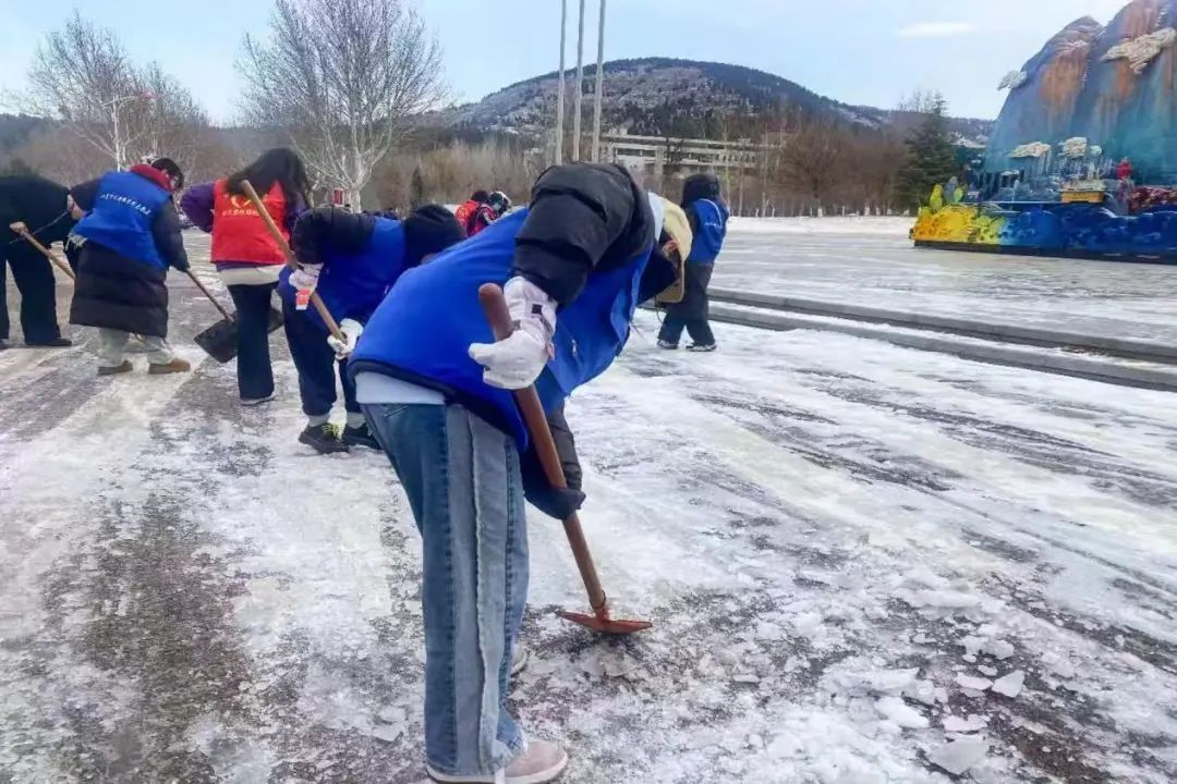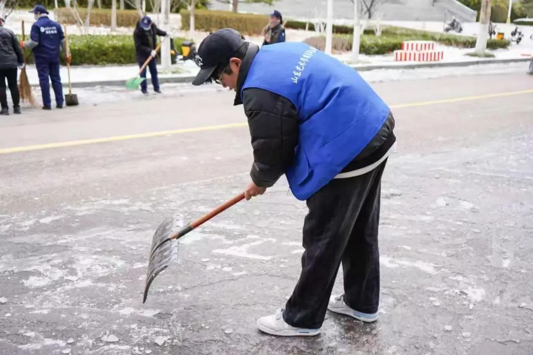 为保证志愿者的活动安全,高效完成破冰清雪任务。各部门多方联动、高效协同,后勤管理处老师们细心提醒志愿者们工具使用方式,团委为大家发放暖身又暖心的暖宝宝贴。在师生共同努力下清理出了一条条“暖心路”,架起了一座座“连心桥”。让我们深爱的山艺更加美好。