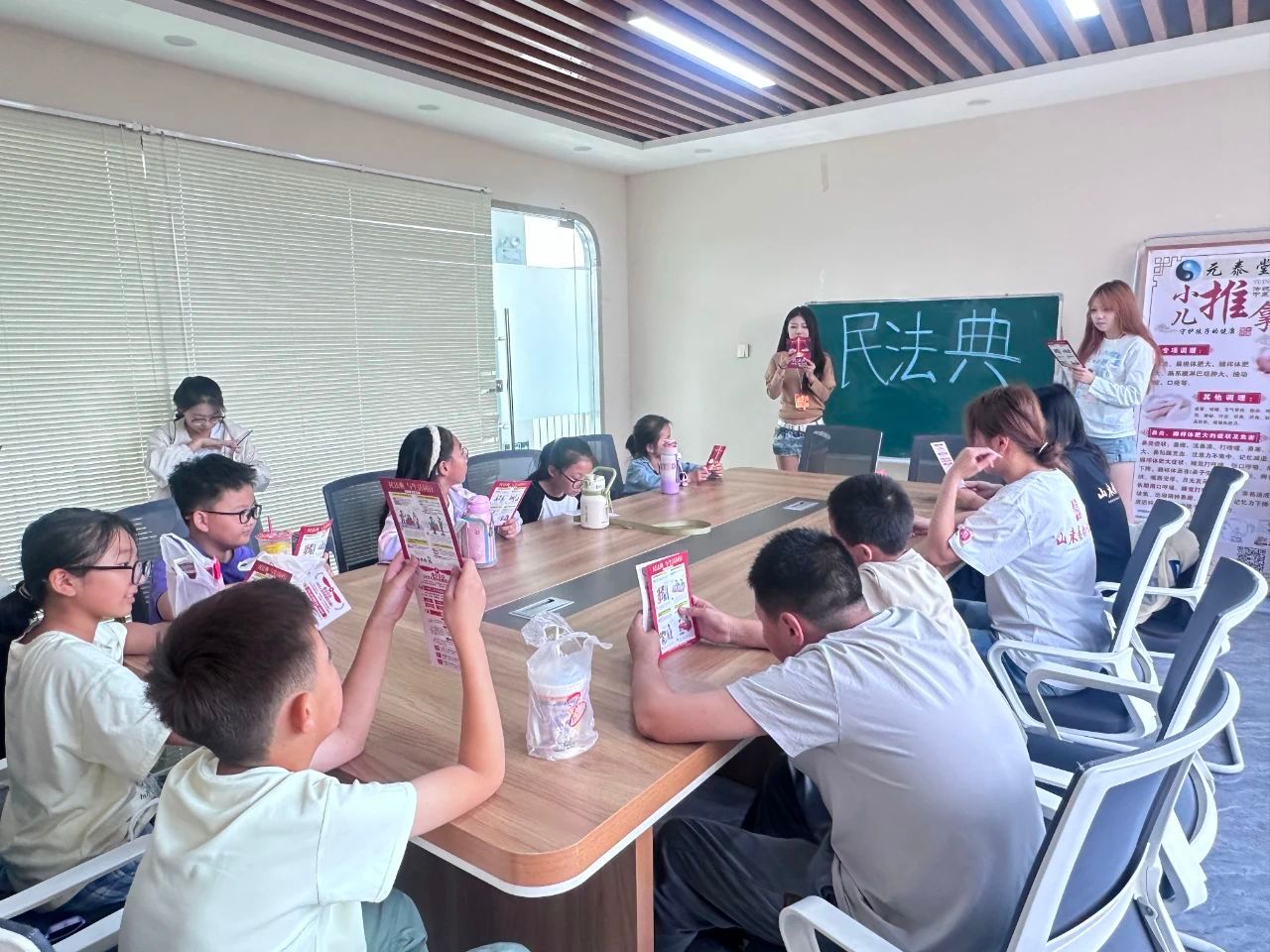 活动中,志愿者以“高空抛物责任”“文明养犬规定”等生活化案例为切入点,引入《民法典》核心条款进行讲解;在互动环节中,志愿者通过手势舞表演、“击鼓传法”等形式开展普法问答,在帮助孩子们高效记忆法典要点的同时,增加了普法活动的趣味性和实效性。