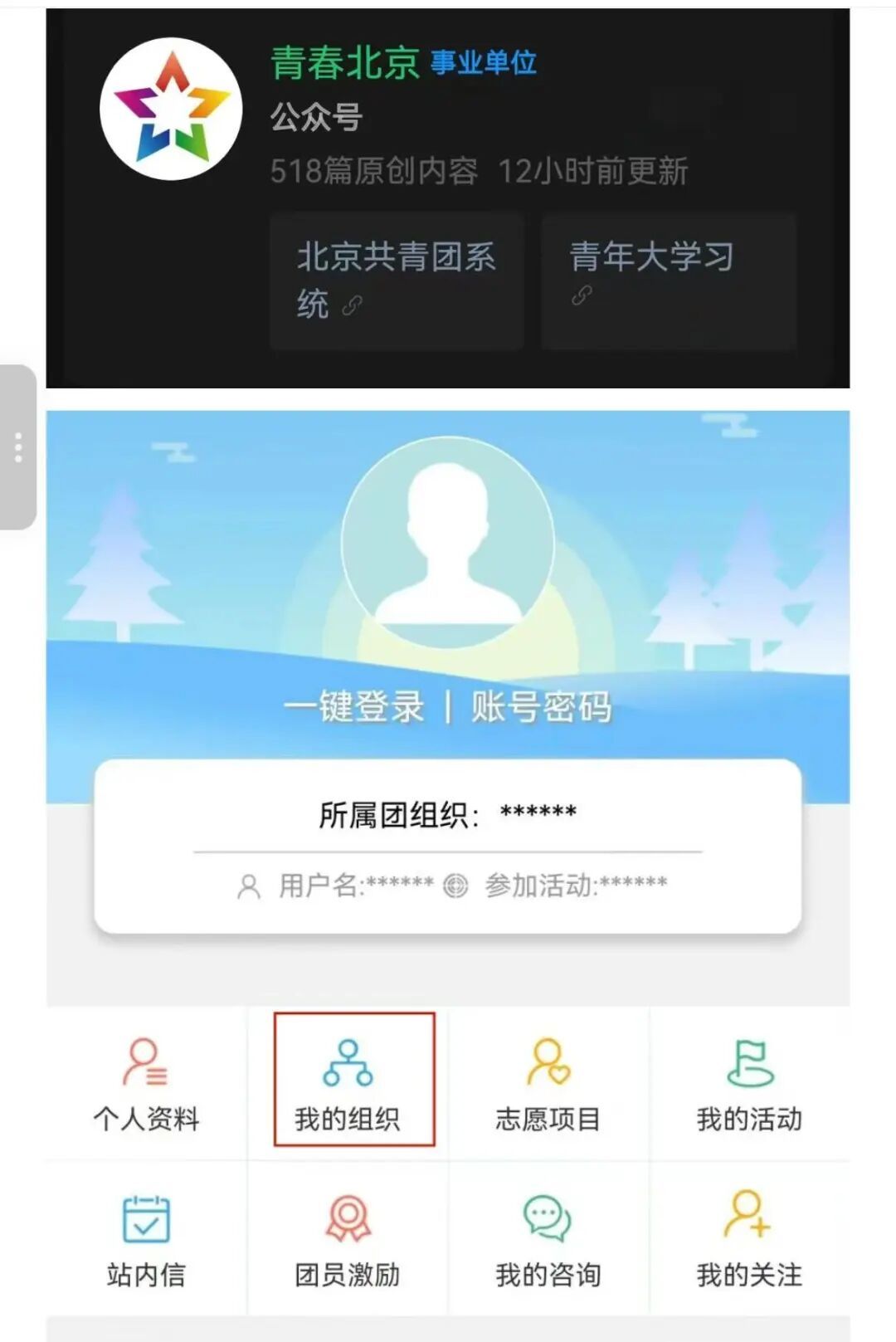 “青春北京”-“北京共青团系统”-“我的”-“我的组织”