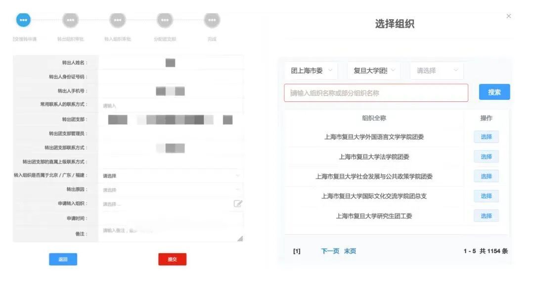“福建共青团”-“团组织关系转接”-“组织关系转接”