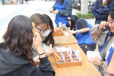 夏日校园中,青志协纳新摊位前一片鲜亮的“志愿蓝”。学长学姐热情讲解,新生们驻足咨询、提笔报名,眼中跃动着好奇与期待。一次招手、一份表格, 仿佛志愿精神的接力,让温暖在阳光里悄然传递。
