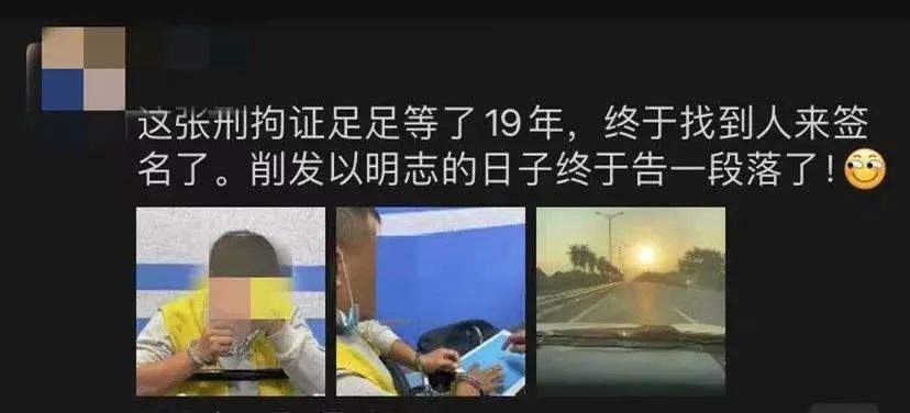 这么多年来,陈军时常与同事翻阅案卷,将相关信息与外省市警方交流,每一次出差都与当地警方谈起该案,不放过任何一线希望。2021年9月,潜逃19年的嫌疑人落网。记挂该案19年的陈军,也终于卸下心头重压:“削发明志的日子告一段落,即将迎来新发型。”
