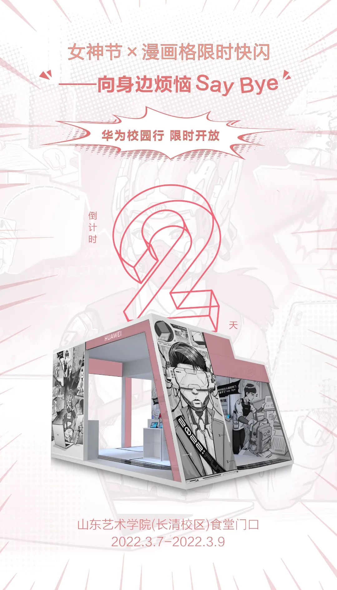 春日渐渐,花香漂浮,阳春三月,万象更新。感谢山艺的每一个“她”,一切美好皆属于你。女神节活动 × 校园漫画格活动即将来临,3月7日-3月9日,在食堂东侧小广场,为期三天的路演活动只等你来。