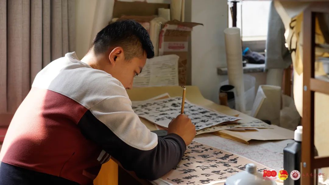 书法生们笔酣墨饱坚定从容