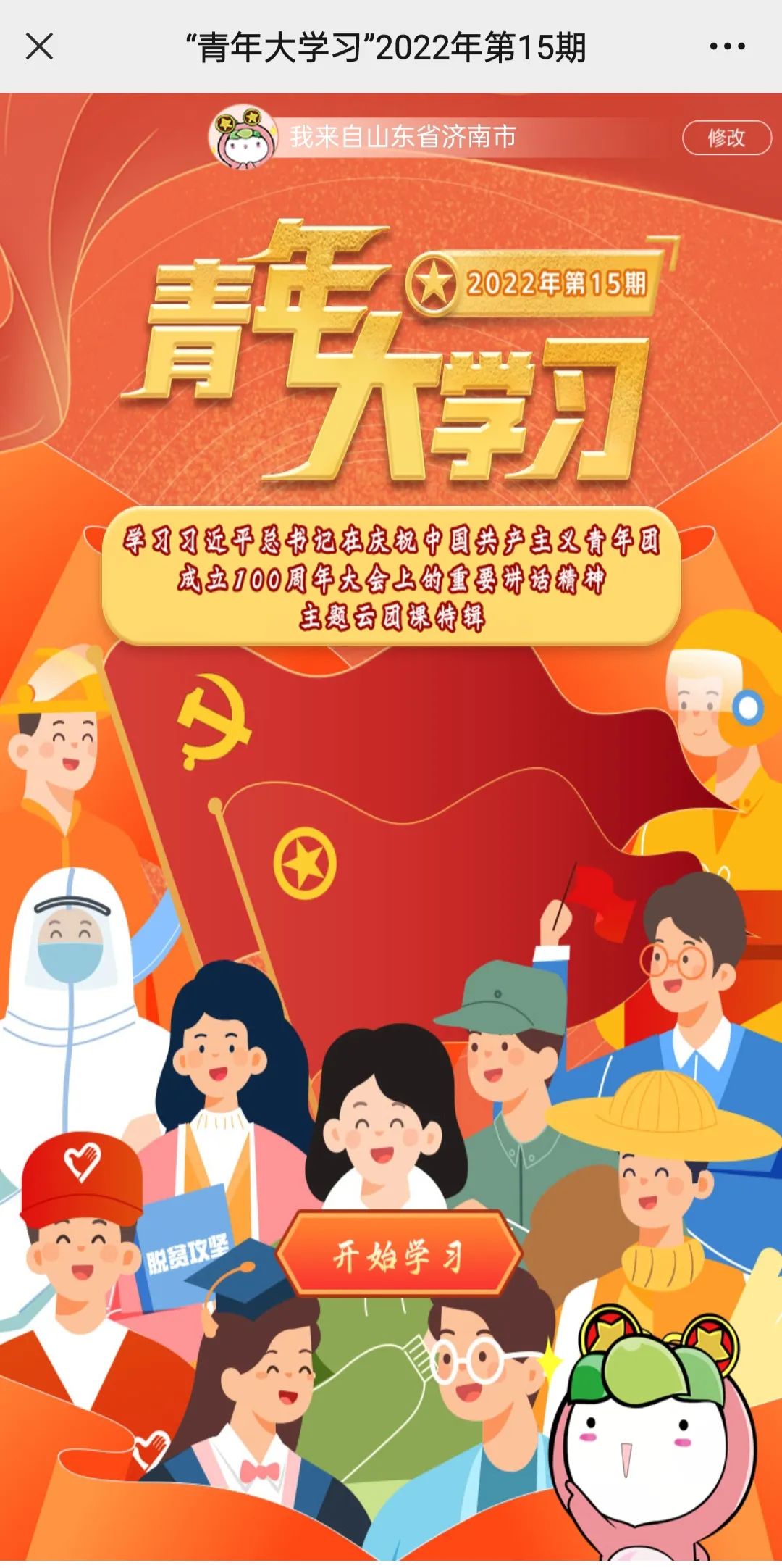 今天,我们就一起来学习“青春心向党 百年再启航——学习习近平总书记在庆祝中国共产主义青年团成立100周年大会上的重要讲话精神”主题云团课特辑,遵循习近平总书记的谆谆教导,牢记习近平总书记的殷殷期望,努力成长为有理想、敢担当、能吃苦、肯奋斗的新时代好青年,用奋斗践行“请党放心、强国有我”的青春誓言,不负时代,不负韶华,不负党和人民的殷切期望!