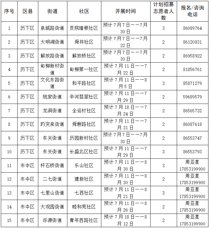 为落实全国青年发展友好型城市试点建设,深入推进共青团“我为青年办实事”工作,充分发挥团市委服务青少年职能,团市委决定依托“青春社区”创建工作,在全市范围内建设首批“济南市青少年宫社区志愿服务站”。为满足全市暑期托管服务需求,提升托管服务质量,团市委、市青少年宫、市志愿者行动指导中心决定面向社会招募志愿者,参与暑期托管服务,现将有关事项公告如下。