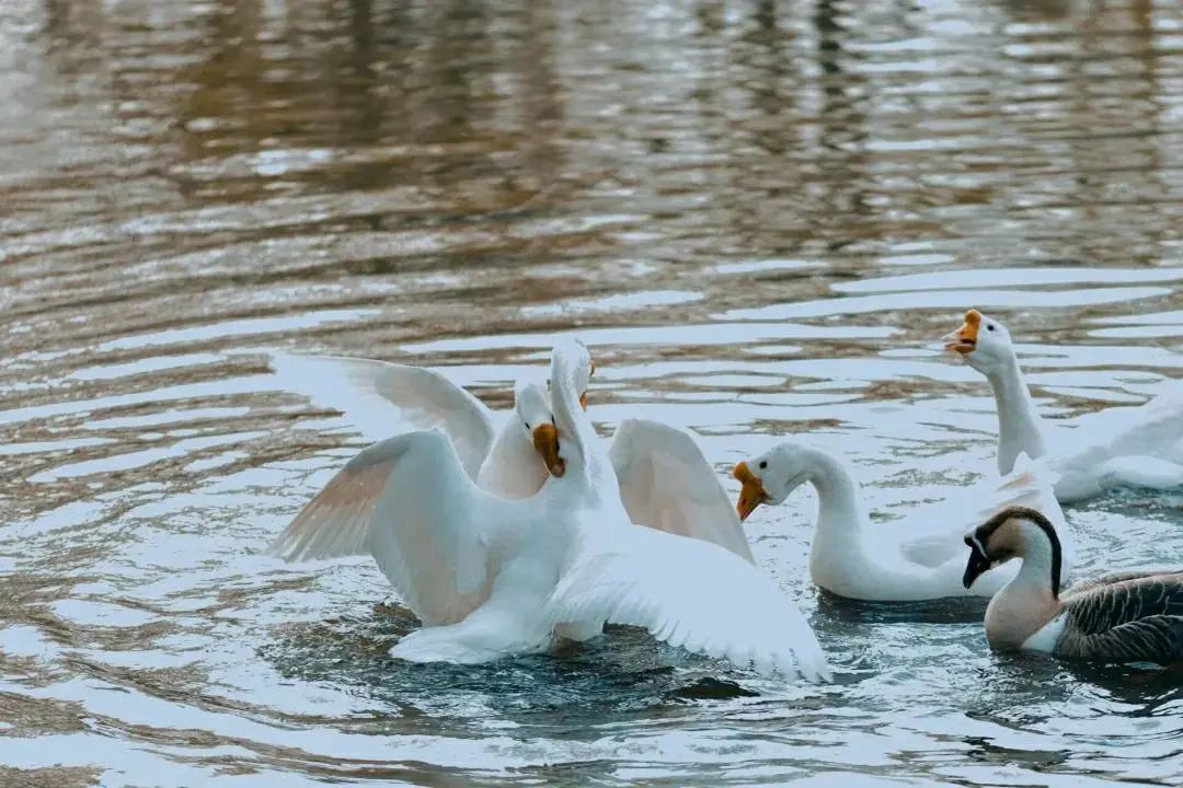 看!是大橘“学长”在林荫间隙中晒太阳,孔雀宝宝也在悄悄探头,是哪位哥哥姐姐在喊它呢,惊起的飞鸟、凫水的大白鹅......每一位成员都在感受新学期的美好