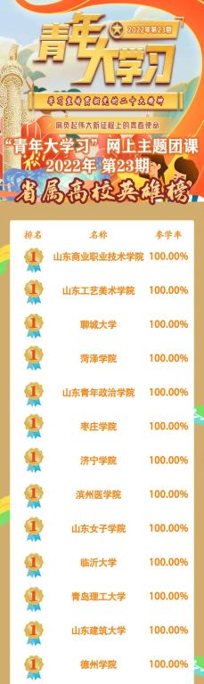 我校参学率与其它39所省属高校均达到100%为所有参与学习的团组织、团员青年手动点赞!