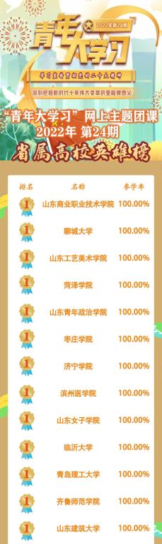 我校参学率与其他40所省属高校均达到100%,为所有参与学习的团组织、团员青年手动点赞
