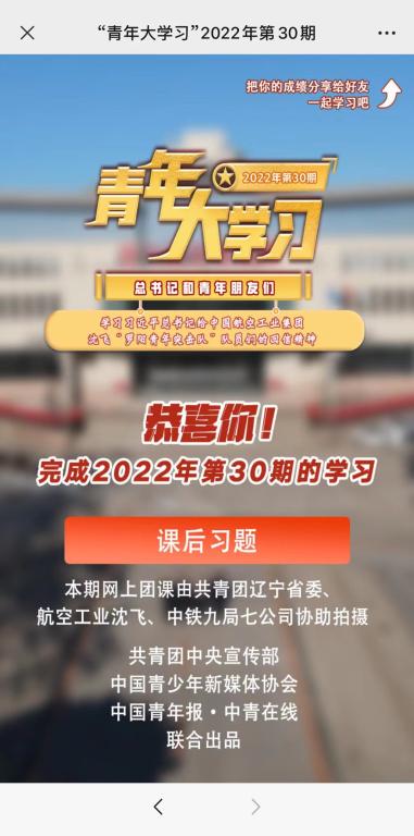 本周我们将与大家一起学习青年大学习2022年第30期