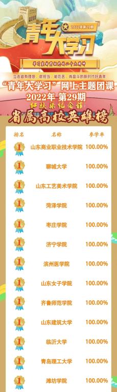 我校参学率与其他32所省属高校均达到100%为所有参与学习的团组织、团员青年手动点赞