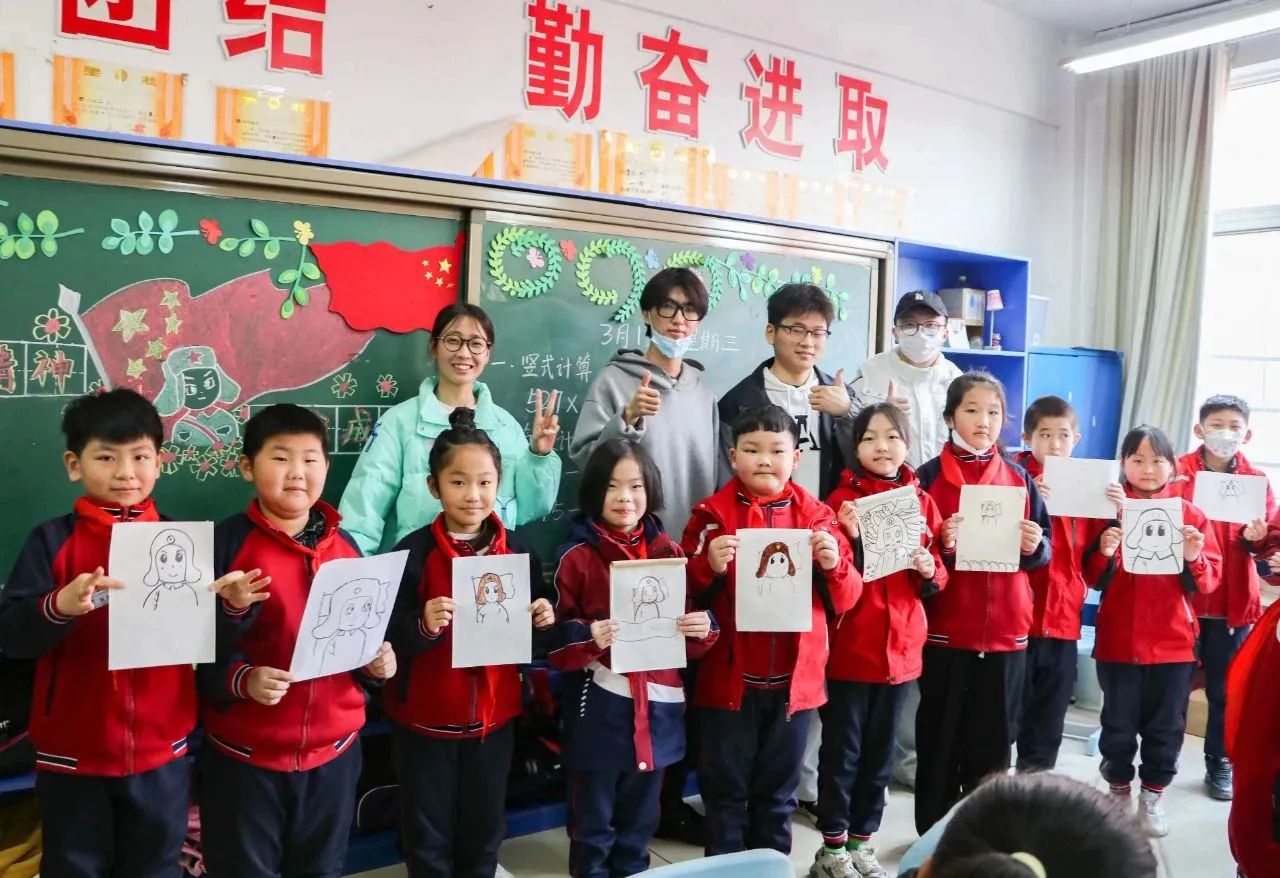 设计学院正青春志愿服务团队在第60个“学习雷锋纪念日”到来之际,来到济南市长清区的乐天小学、石店小学,开展“学习雷锋精神”主题支教活动。活动过程中,志愿者们发挥专业特长,面向同学们开展绘画、剪纸等公益课堂,志愿者们还与孩子们一同分享学习雷锋感悟,传播雷锋精神和志愿服务精神,更让学生们进一步认识雷锋,领会雷锋精神。