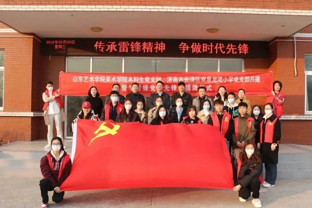 3月2日,美术学院本科生党支部与济南市长清区双泉龙湾小学党支部开展结对共建,并为学雷锋党员先锋岗揭牌。山艺爱心驿站志愿者以《我心目中的雷锋》为题教孩子们画儿童画。志愿者带领孩子们一起读了《雷锋日记》,重温了雷锋事迹,讲述了雷锋精神的时代内涵,手把手指导孩子们用画笔描绘出自己心目中的雷锋形象。起稿、勾线、涂色......在志愿者和孩子们的共同努力下,一幅幅生动形象的雷锋画像跃然纸上,体现了大家对雷锋同志的敬仰之情。