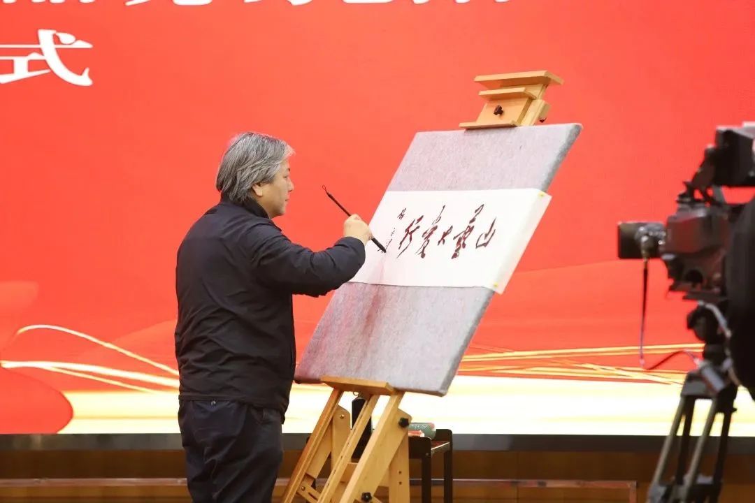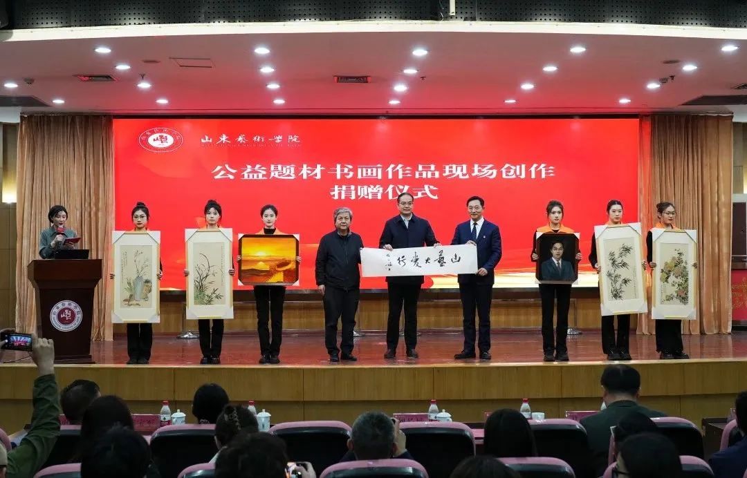 在公益题材书画作品捐赠环节,中国书法家协会副主席、山东省书法家协会主席顾亚龙教授现场创作了书法作品“山艺大爱行”,美术学院、传媒学院师生共同精心创作了油画、中国画作品。王洪禹代表学校将六件书画作品捐赠给长城爱心大本营,刘长城接受捐赠并回赠了受捐证书。爱心捐赠是山东艺术学院立足专业学雷锋,弘扬雷锋精神、开展社会服务的一次生动体现,捐赠的作品也充分体现了学校在学雷锋活动中的艺术专业优势和人才资源优势。