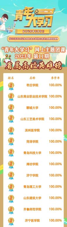 下面让我们一起来回顾,2023年第11期大家的学习成果如何吧~,在2023年第11期“青年大学习”,网上团课学习中,我校取得99.08%的参学率,希望大家继续努力