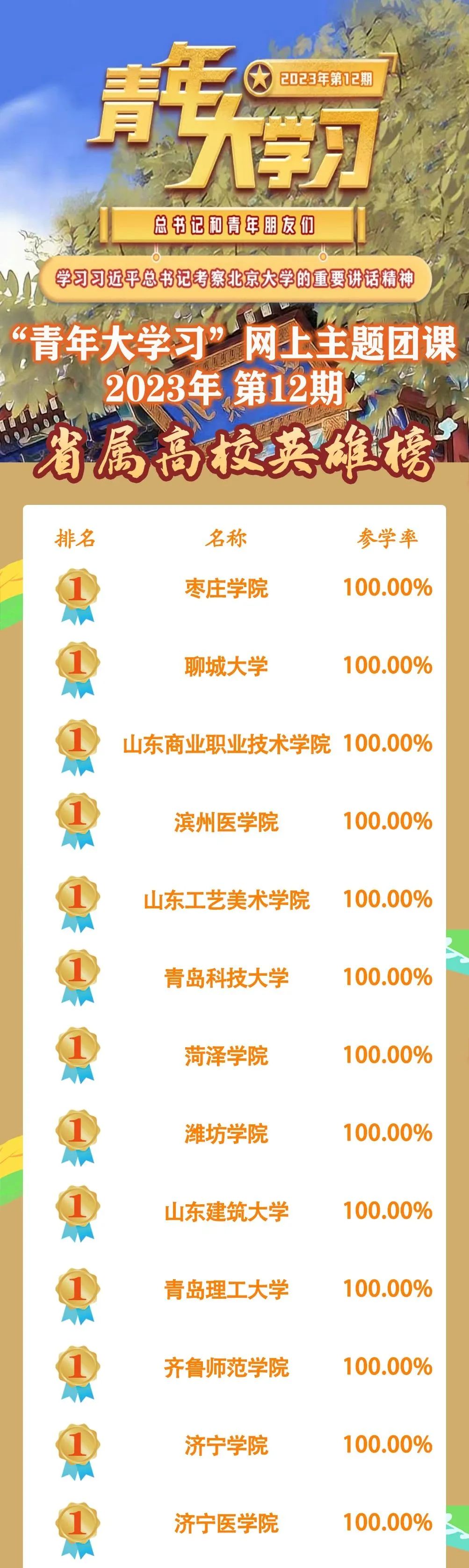 传媒学院距离100%参学率仅一步之遥,希望继续努力;美术学院、戏剧学院参学率不足90%,希望上述学院提高认识,狠抓落实,采取有效措施,引领带动团员青年参与青年大学习。