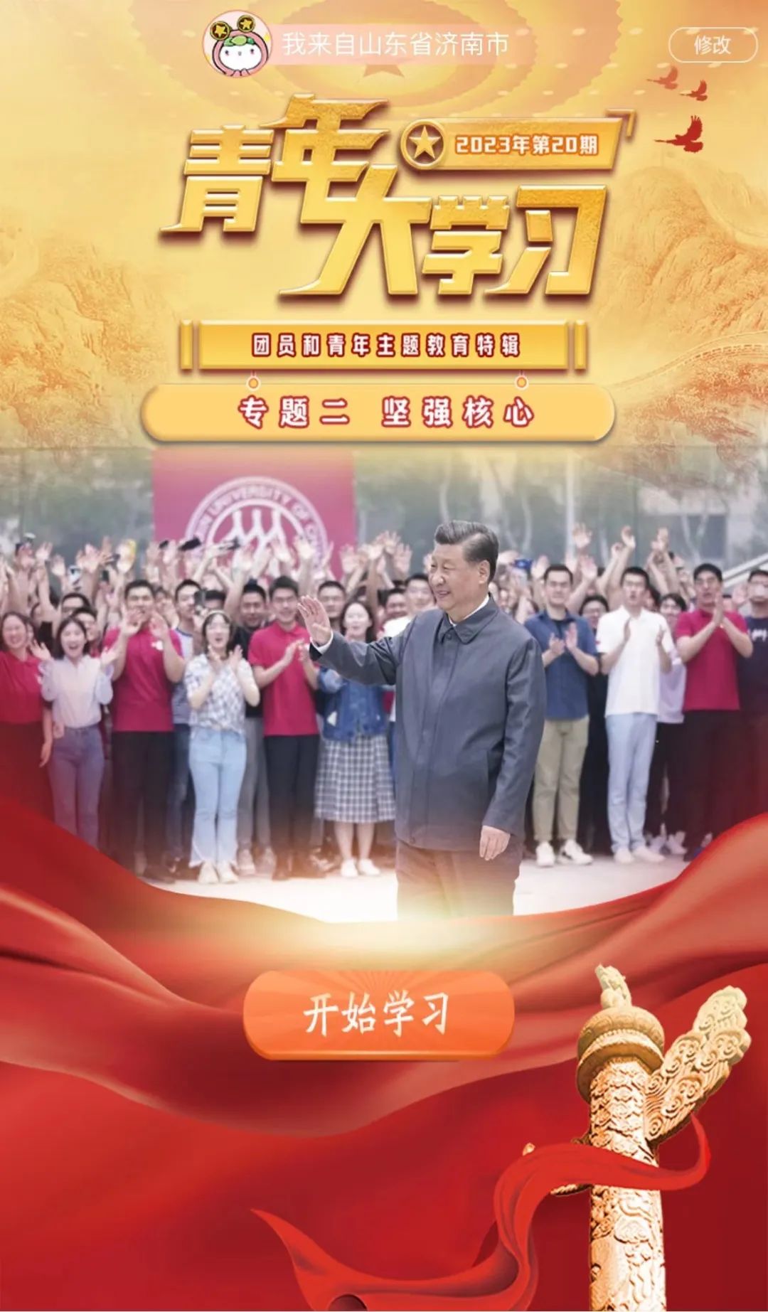 进入青年大学习主界面后填写相关信息即可进入学习环节!