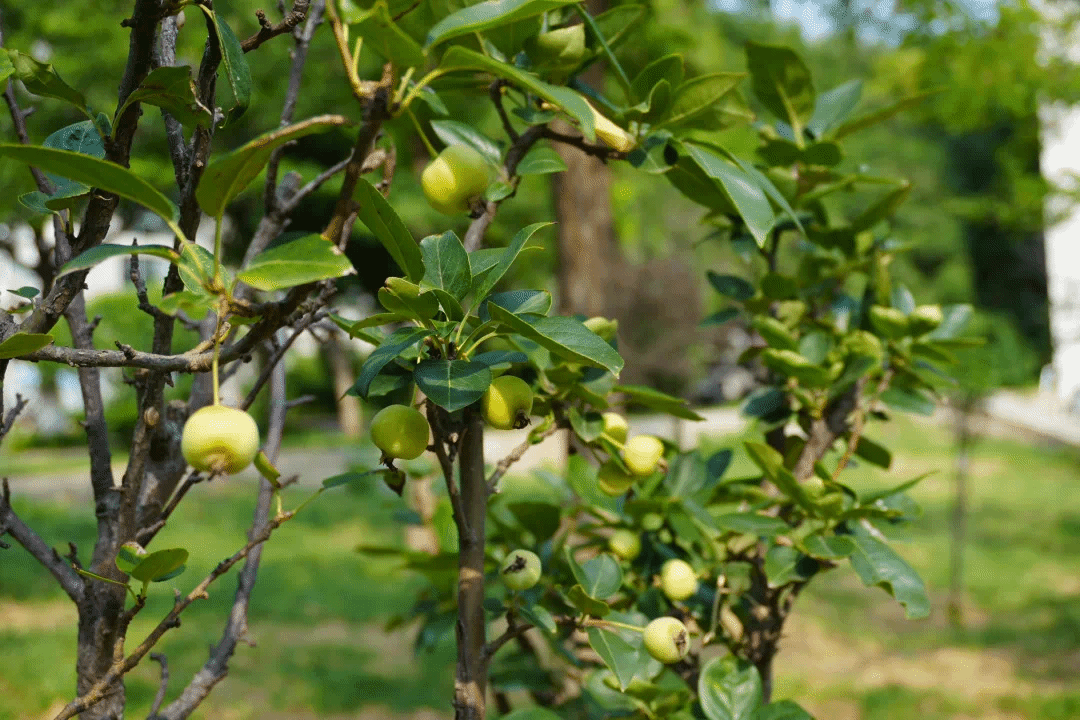 度过炎炎夏日,海棠树在金色的光辉中悄然成长,而今,夏日的热情逐渐转化为秋日的宁静,海棠树不仅以满树的绿叶和偶尔绽放的花朵装点着这个世界,还在不经意间让一颗颗小巧而青涩的果实挂上了枝头