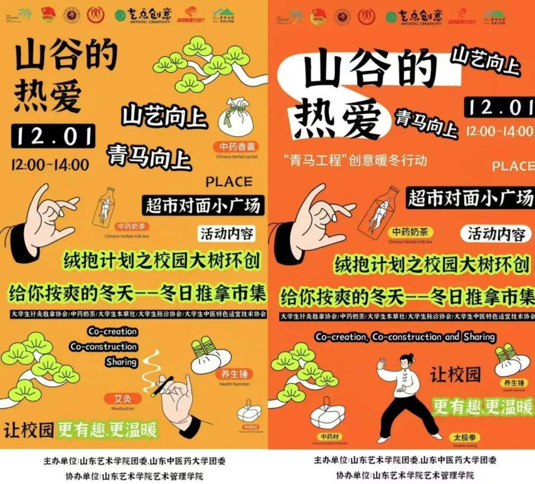 从“绒抱计划之校园大树环创”到“给你按爽的冬天——冬日推拿市集”,我们将校园文化与健康理念相结合,共同营造一个充满温情的冬日校园,让爱与关怀在校园的每个角落流动。