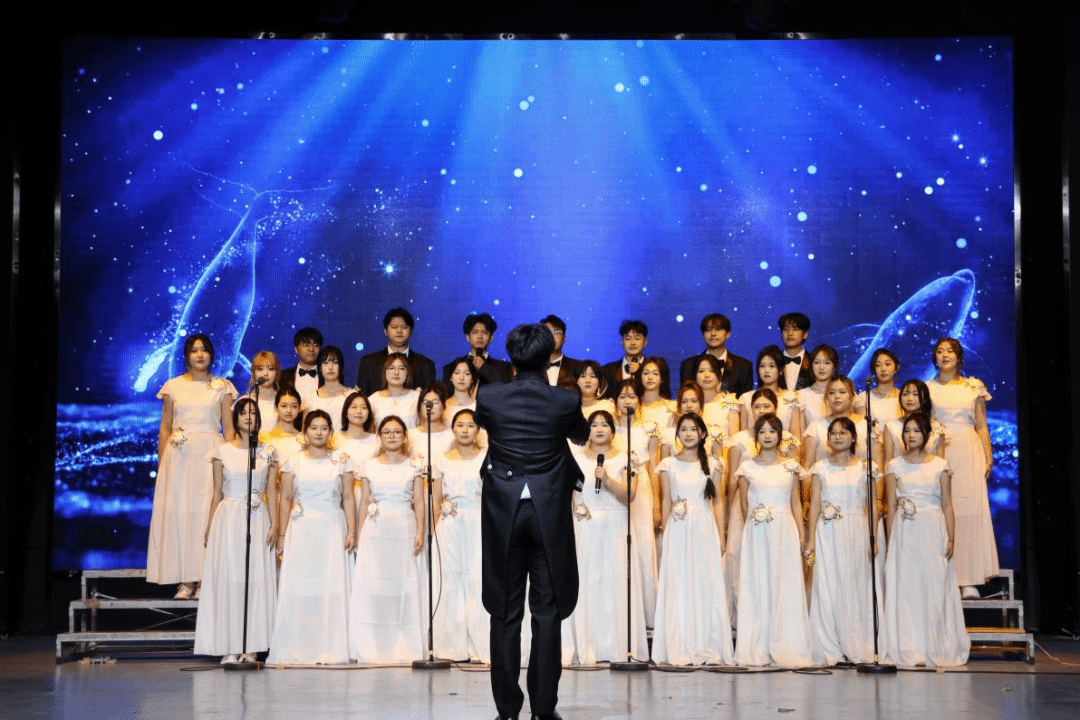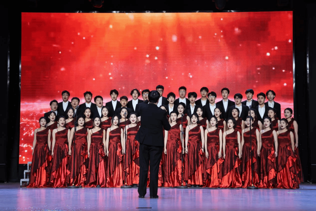 本次比赛采用讲述与合唱相结合的方式,呈现了一场别开生面的音乐思政课。13个学院650余名师生,历时一个多月精心编排,从选曲、撰稿、排练到服装、道具的设计……各学院充分发挥专业优势,将舞蹈、戏曲、书法、朗诵等多种艺术形式巧妙融入合唱表演中,用激昂嘹亮的歌声、用深沉饱满的热情向历史致敬。城市艺术与创意学院2021级学生刘一诺、2024级学生马鑫茹,作为青春讲述人也现场分享了自己的体会与成长。
