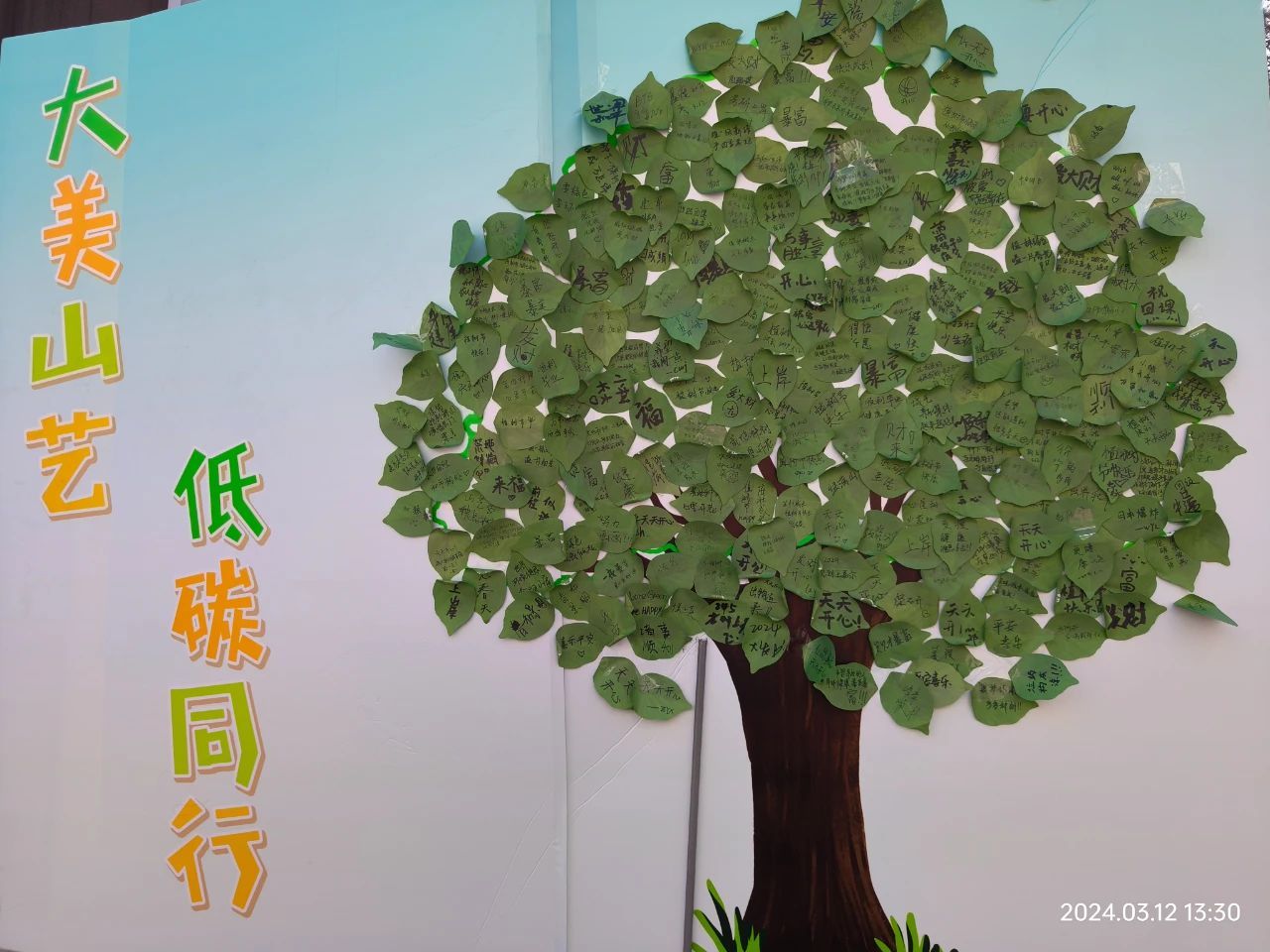 在“种下一颗‘心愿树’ ”活动中,同学们在便签上写下自己的期待,装饰大树展板,枯枝因为爱而长出绿叶,心愿树上贴满了三百多位同学闪闪发光的希望,承载着美好的期盼与向往。