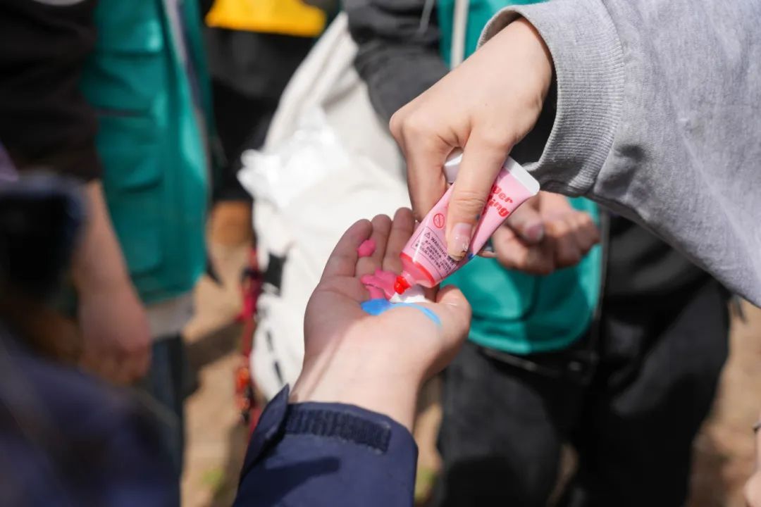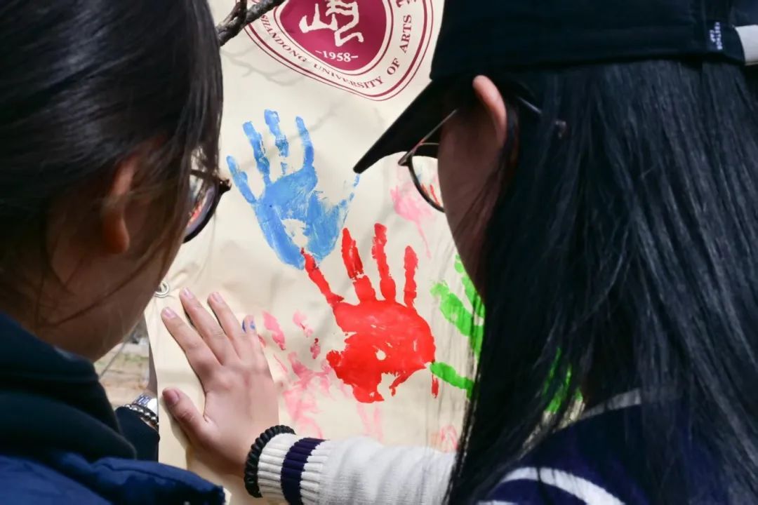 “365天成长刻度”条幅前,师生们蘸取环保颜料按下彩色手印,斑斓的掌印是大家成长的印记,而守护绿色、真爱海棠,是山艺人又一个365天的约定。