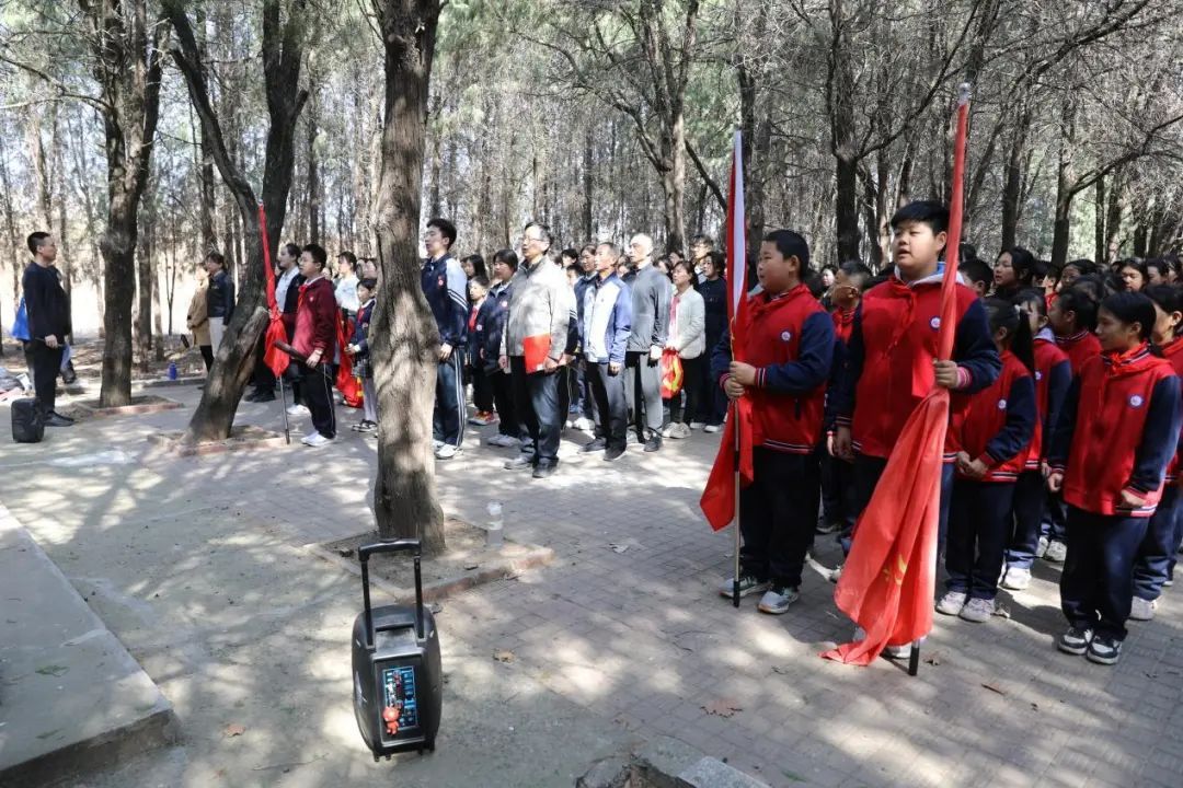 活动在庄严的国歌声中拉开序幕,与会师生肃立在“一门三烈士”纪念碑前,齐声高唱国歌表达对革命先烈的崇高敬意。