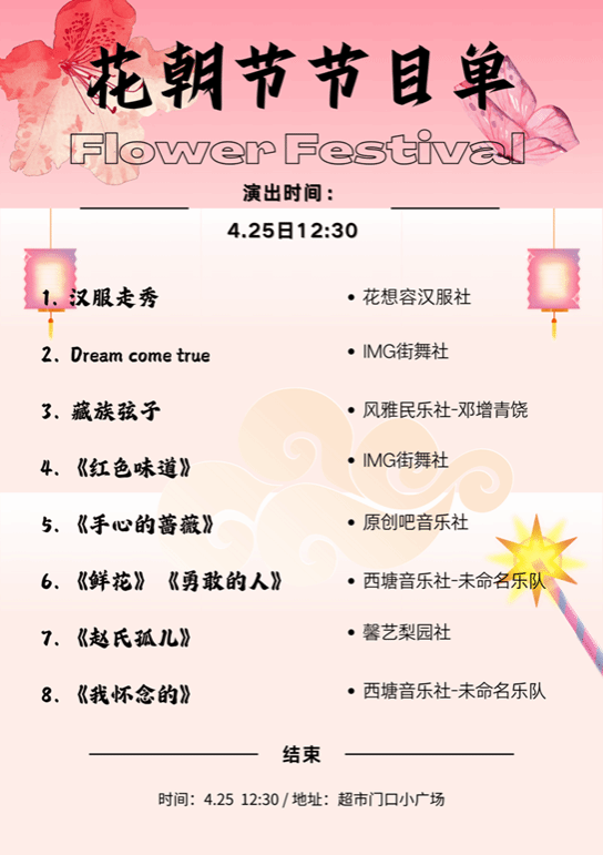 3.精彩节目:各大社团精彩表演,十二花神T台走秀…