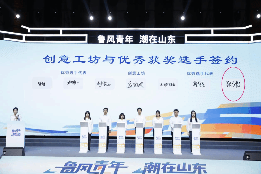 为更好回应支持青年创新创意,推动更多创新项目落地生金、开花结果,共青团山东省委与高校、企业、金融机构深度链接,成立“山东省高校青年创新创意联盟”,6位获奖选手成为创意工坊首批特邀设计师,5个文创产业项目签署合作协议。我校张子怡同学受邀签约“创意工坊”成为首批特邀设计师。