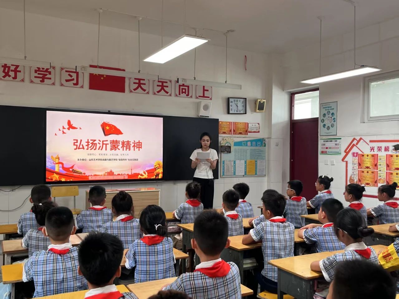 活动中,“梨园青年”志愿宣讲团成员深入讲解了沂蒙精神,金乡县实验小学120余名小学生聆听。在宣讲中,志愿者将红色故事融入戏曲艺术,以生动讲解传递信仰力量。志愿者表演了吕剧经典剧目《红嫂》唱段,用婉转的唱腔诉说着沂蒙的军民鱼水情,将红色基因深植在孩子们的心间。青年教师逄瑷嘉带领6名学生志愿者指导金乡县实验小学排练原创京剧《京韵古诗·四季》。师生提前熟悉节目内容,根据生旦净丑行当分组教学,从基础唱腔到身段造型,在原有基础上耐心拆解、反复示范,孩子们对剧目有了更全面的理解和明显的提升。