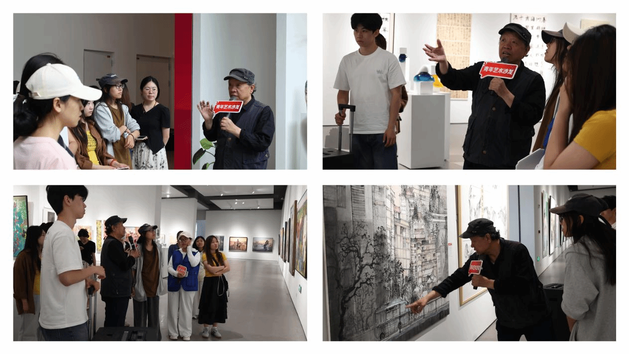 参观结束后,梁教授与同学们亲切交流。他以自身经历为例,分享了艺术创作与时代使命的关系。他提到:“我从 1983年留校至今,始终坚信艺术不仅是个人表达,更是社会责任”。他鼓励同学们:“青年艺术家要兼具‘笔墨功夫’与‘家国情怀’,在传统中守正,在创新中突破。”