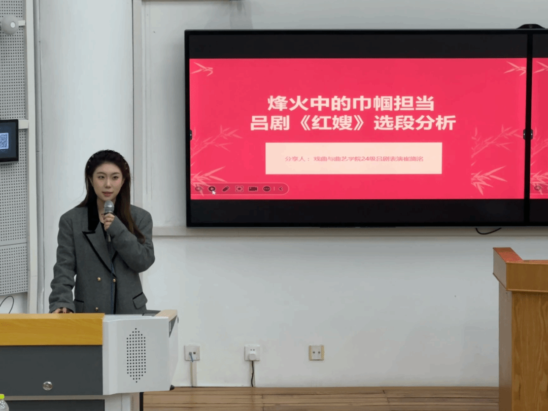 在思想磨砺层面,我深入学习马克思列宁主义、毛泽东思想、邓小平理论、“三个代表”重要思想、科学发展观以及习近平新时代中国特色社会主义思想。将青马培训视为成长的“补给站”,潜心研习党的创新理论,并将理论与实践相结合,思考如何让吕剧这一传统艺术在新时代讲述红色故事。作为新时代“红色戏曲”的传承者与演绎者,我积极将吕剧红嫂选段打造为烽火中的巾帼担当PPT,与大家分享交流。