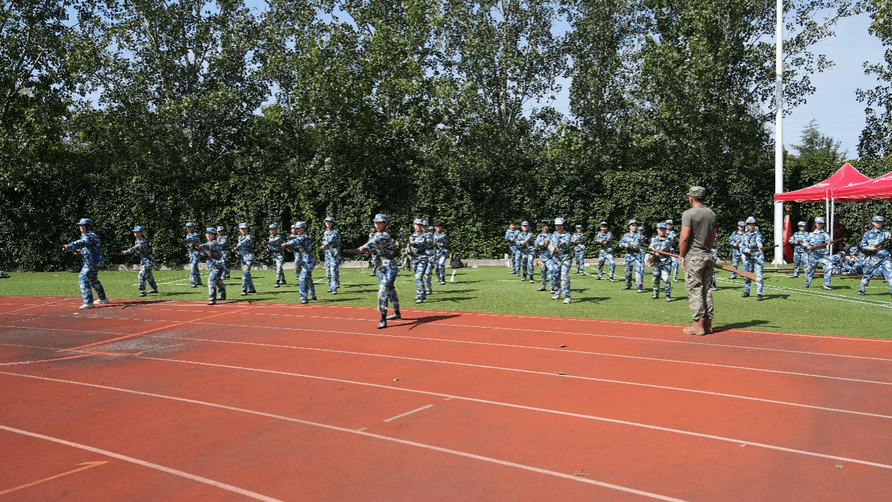 每一次摆臂都带着风,每一声口号都震彻云霄