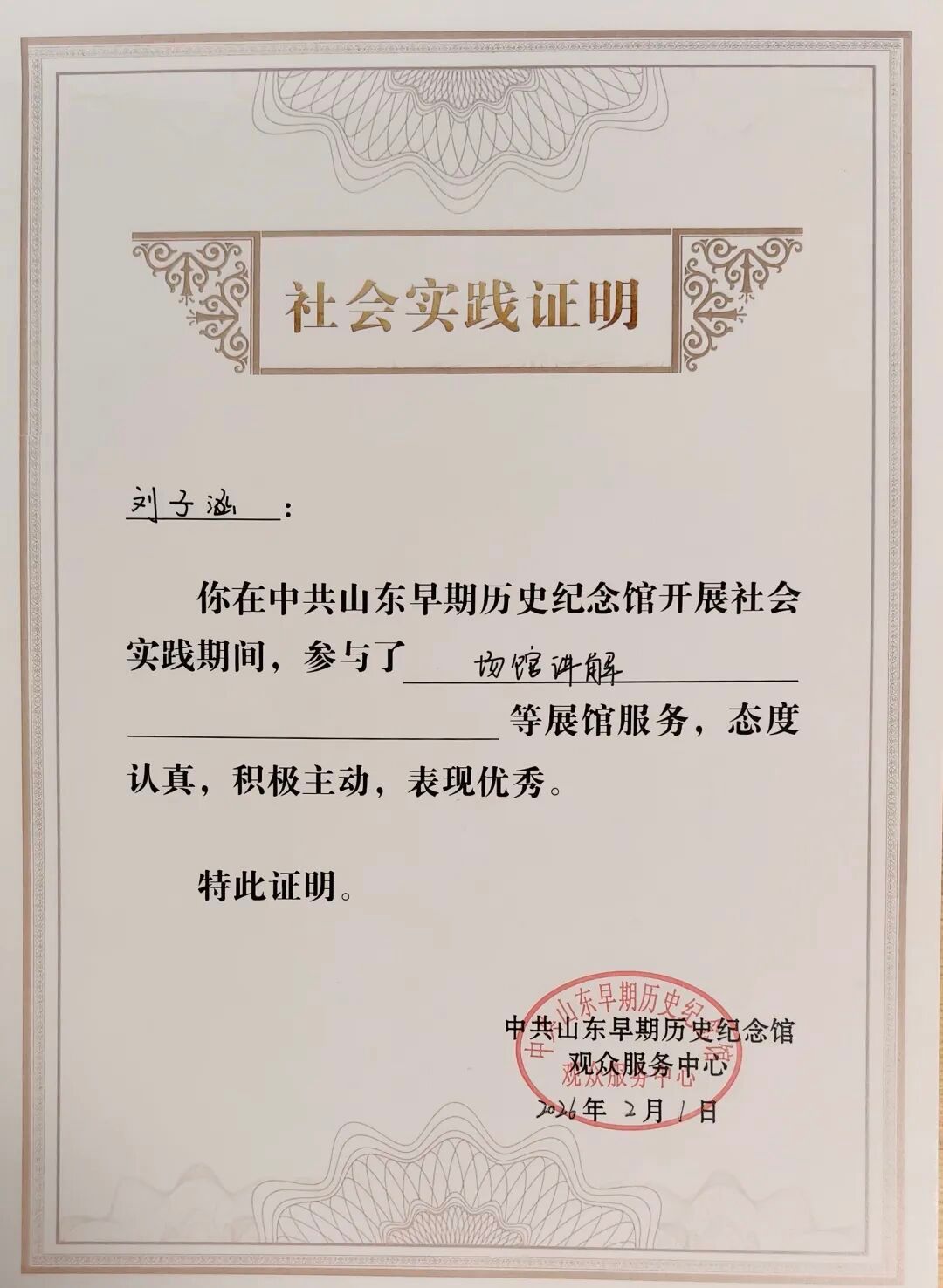 今年寒假,我回到家乡济南,在历下区党史陈列馆开展社会实践,担任志愿讲解员。为做好讲解工作,我系统学习历下党史史料,深挖历史细节打磨讲解内容,面对不同观众灵活调整讲解方式,在为观众讲述党史故事、提供场馆服务的过程中,完成了从学习者到讲述者的转变。