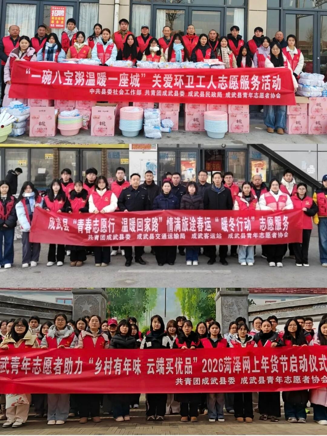 寒假期间,我通过“青鸟计划”加入县青年志愿者协会,积极参与各项志愿服务活动,用实际行动展现青年担当。腊八节当天我们为环卫工人熬制暖心腊八粥、准备鸡蛋与慰问物资,以点滴温情致敬城市美容师;春运期间,我们为往来旅客提供引导咨询、行李搬运、重点旅客帮扶等服务,用心守护春运归途;在2026菏泽网上年货节中,我们化身乡村振兴主力军,做好展区引导、产品陈列、咨询解答等工作,用热情服务保障活动有序开展。