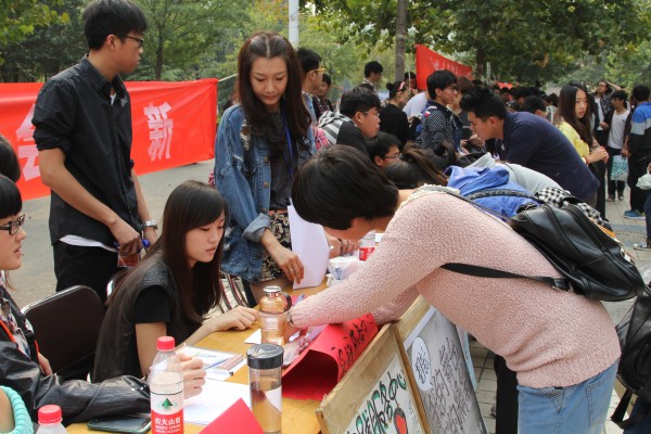 本站讯 为了壮大学生干部的队伍,更好地发掘学生自我教育、自我管理、自我服务的能力,为2013级新生提供一个展示自我的平台。10月8日至9日,由校团委主办,校学生会、志愿者协会联合承办的2013年纳新活动在长清校区餐厅前广场举行。
