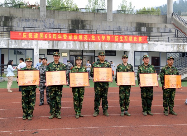 “庆祝中华人民共和国成立65周年暨军歌嘹亮、放飞梦想”新生军歌比赛通过喜闻乐见的形式寓教于乐,是对大学新生进行的一堂爱国主义、集体主义和民族精神的生动教育,极大地调动了新生的参赛热情,培养了学生的集体荣誉感,也表达了新生对祖国生日的祝福,充分展现了艺苑学子蓬勃向上的朝气,为他们真正融入集体、更好地适应大学生活做了铺垫。