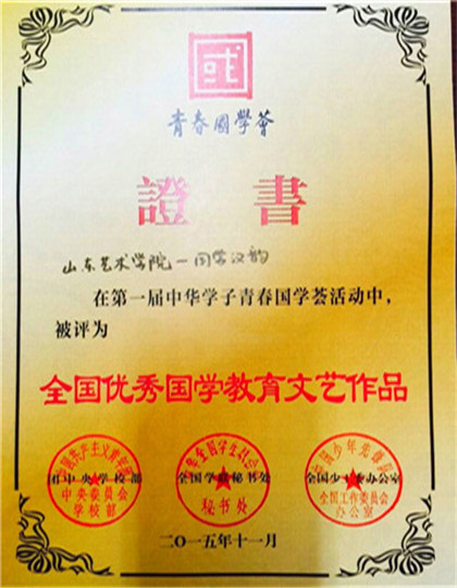 近日,为贯彻落实党的十八届三中、四中全会精神和习近平总书记系列重要讲话精神,引导激励青少年学生继承和弘扬中华优秀传统文化,培育践行社会主义核心价值观,增强青少年学生的文化自信和价值观自信,共同建设中华民族的精神家园,团中央学校部、全国学联秘书处和全国少工委办公室面向全国遴选支持“五个100”优秀国学项目。我校团委推荐的戏剧影视学院文艺作品“国学汉韵”被评为“全国优秀国学教育文艺作品”。