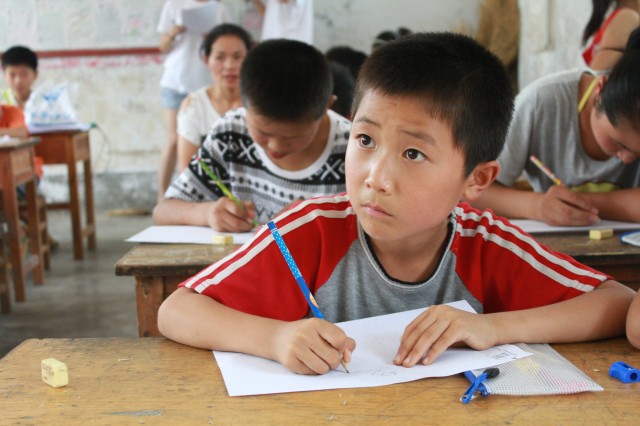 简陋的教室里,蒸笼一样的环境考验着他们的耐力,孩子的双眸给了他们最坚强、最执着的信仰。